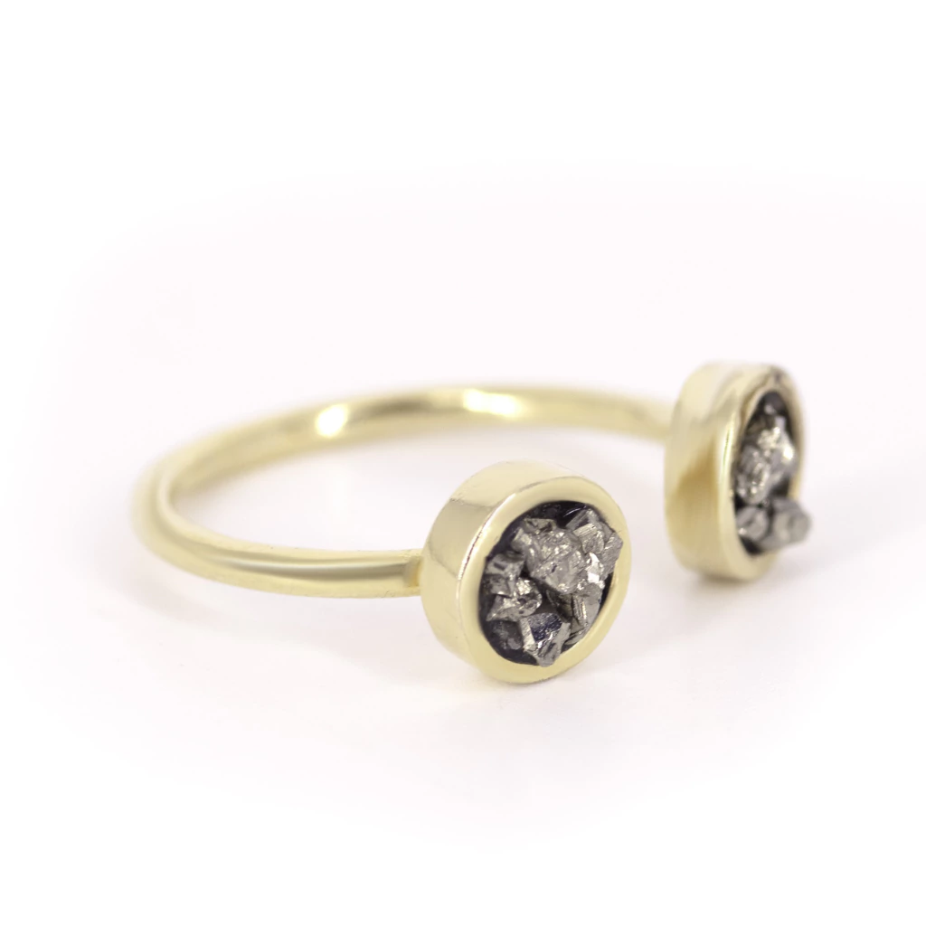 Descubra a beleza singular e a força vibrante do nosso Anel Regulável de Pirita e Pedra Natural, uma peça que une o poder da natureza à sofisticação do design contemporâneo.