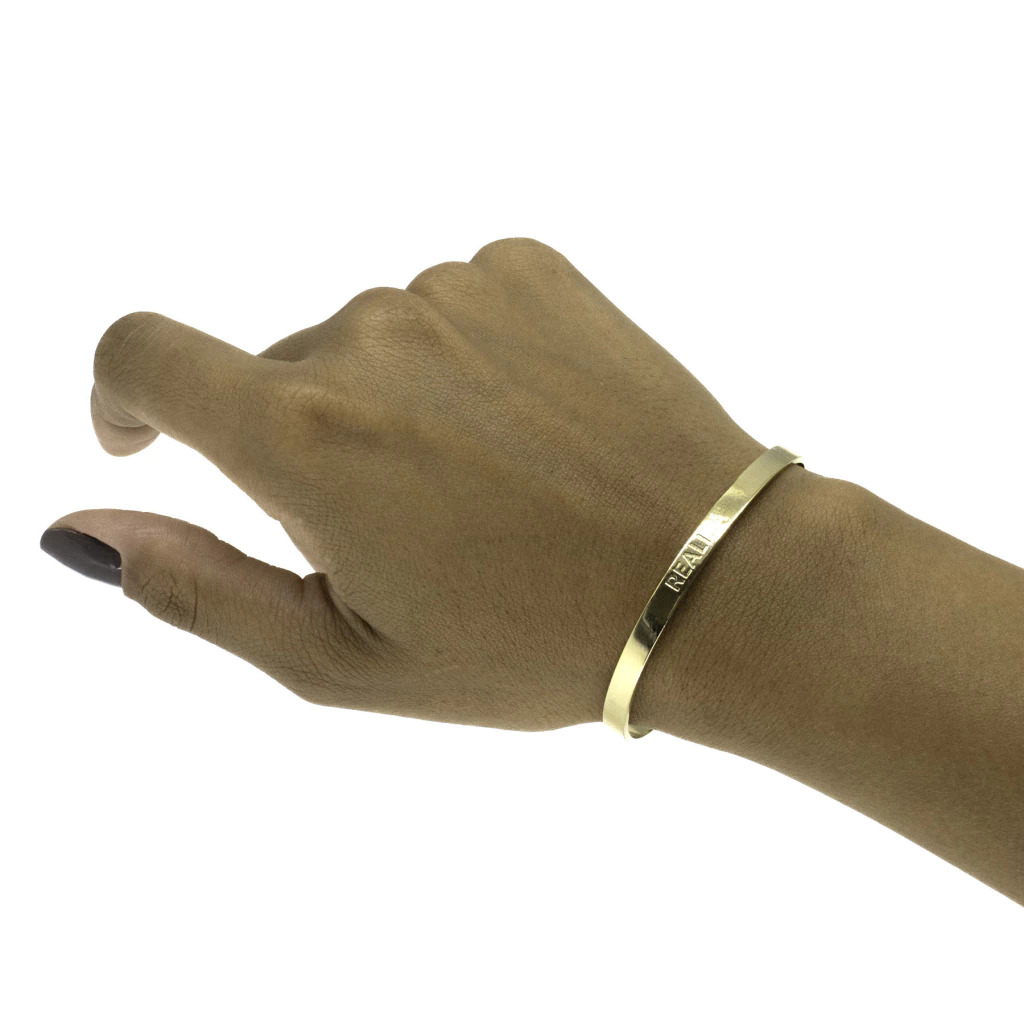 Essas palavras, aliadas ao brilho sofisticado do ouro, fortalecem sua crença na capacidade de transformar sonhos em realidade. Seja no trabalho, na vida pessoal ou em novos projetos, este bracelete é o lembrete constante de que você está no comando.