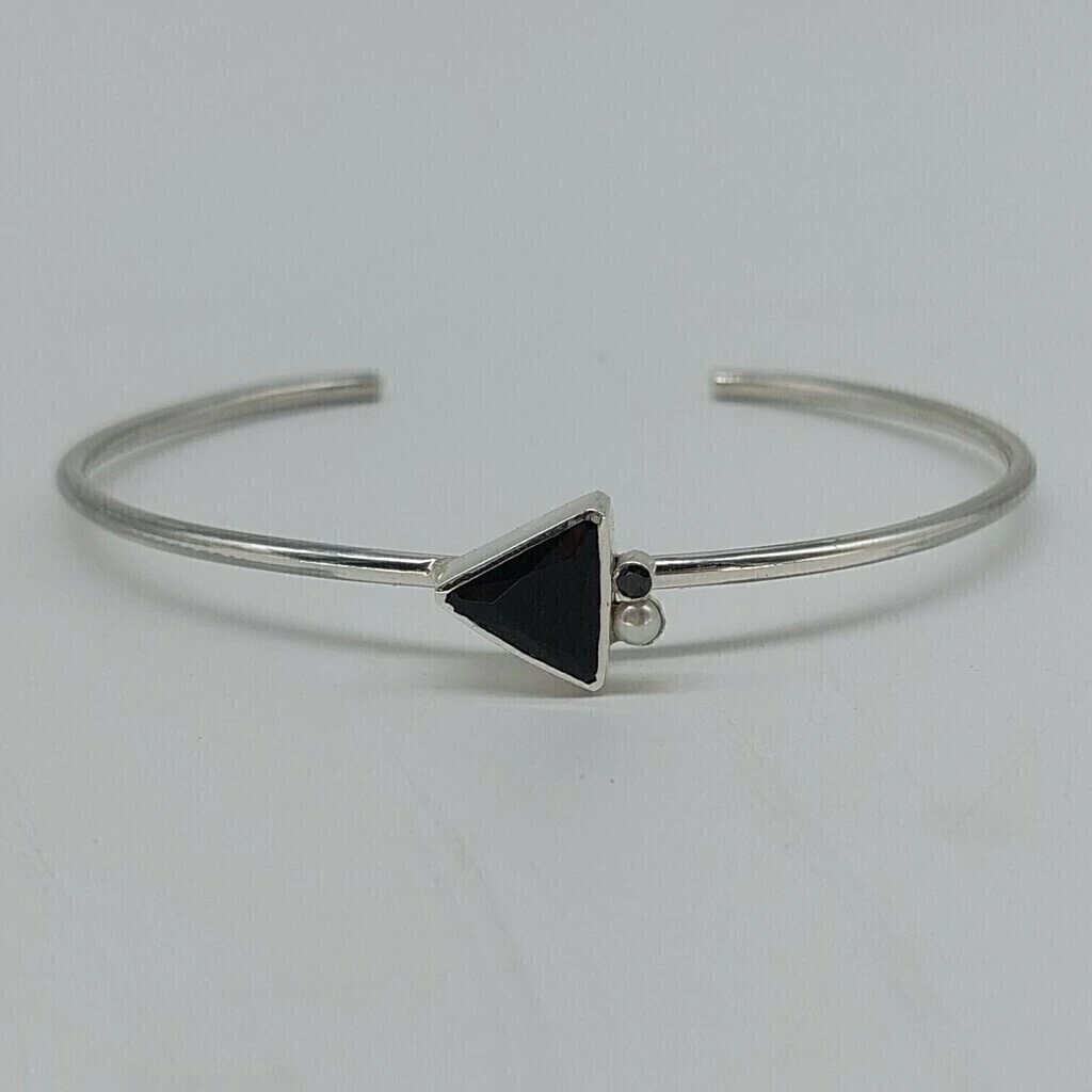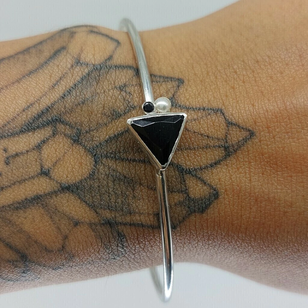 Bracelete em prata 925 e pedra natural ônix + pérola de água doce + hematita ambas naturais.