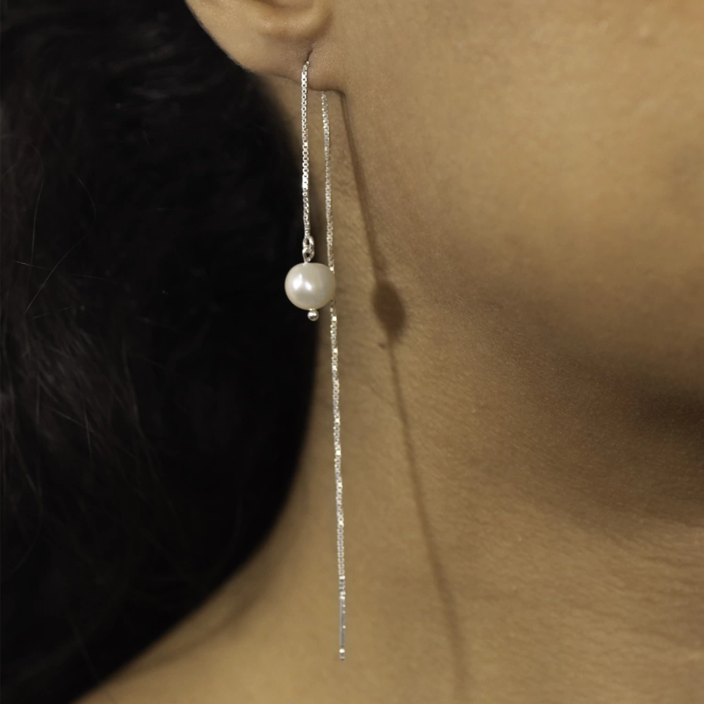 Brincos com corrente veneziano e 15cm de tamanho total.