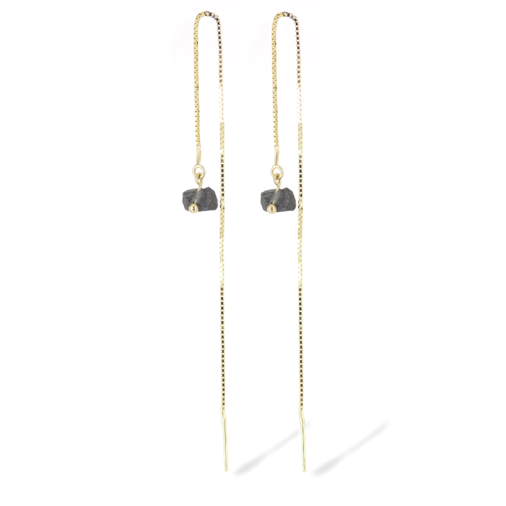 Brinco fio com corrente em prata 925 com pendente de pirita