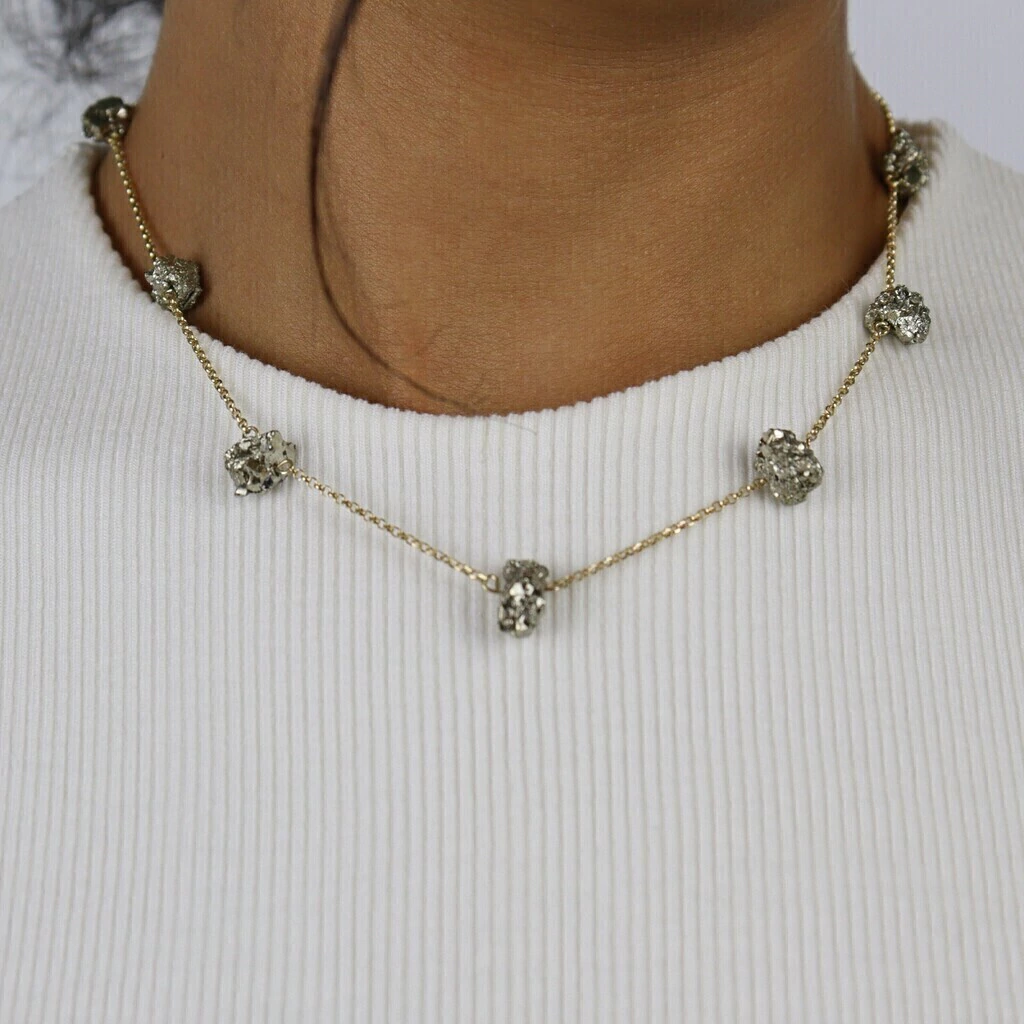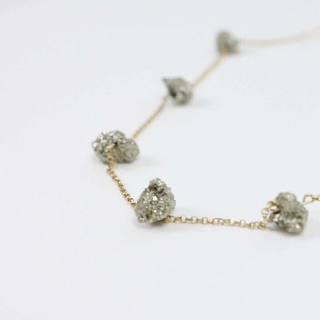 Choker em prata 950 com banho de ouro 18k com 9 piritas brutas espaçadas de 3 em 3 centímetros. Produzido em parceria com Marcela Albertini nossa musa comunicadora e amiga pessoal leonina.