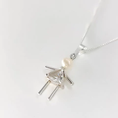 Colar com Pintente em prata 950. Pedra cristal cravada e Perola de água doce.