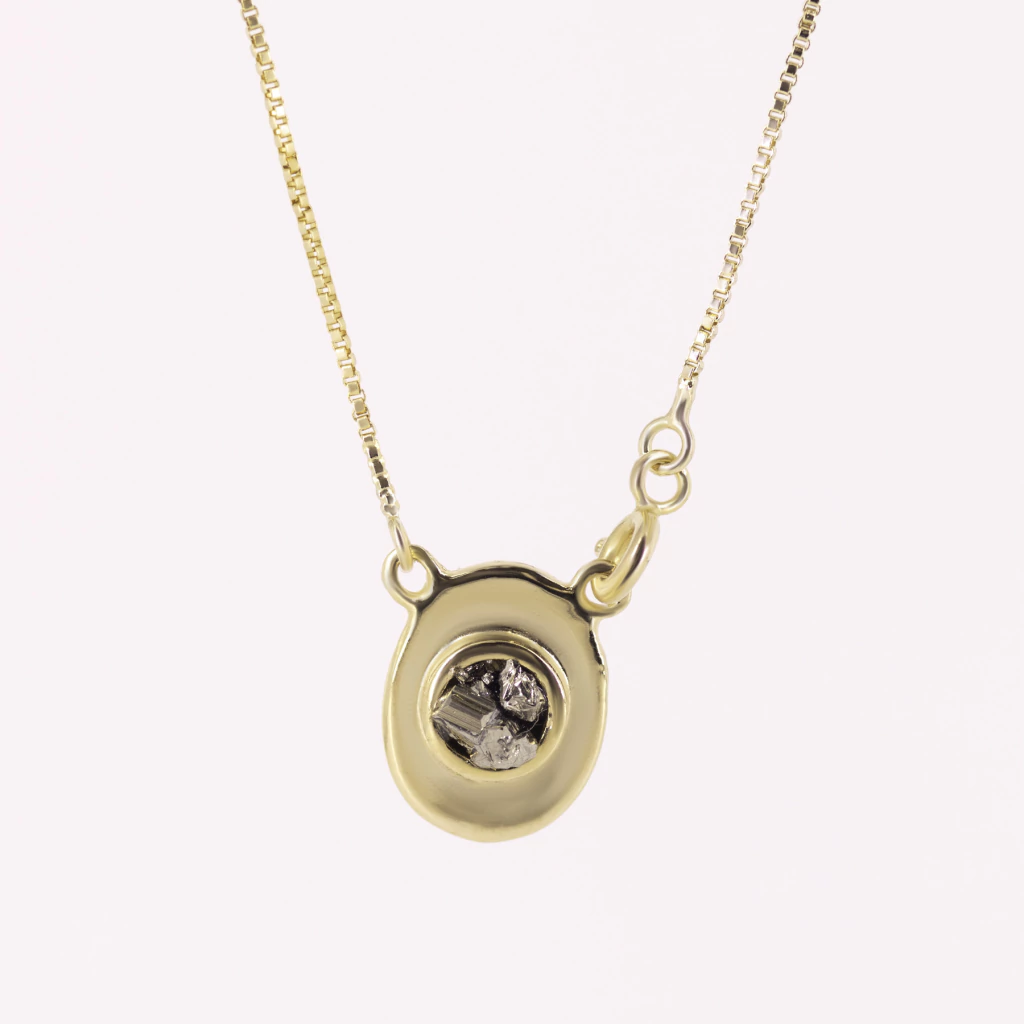 Escapulário produzido com metais nobres com banho de ouro 18k com pedra natural pirita produzido em parceria com a Marca Nativa Store. Comprimento 25 cm.