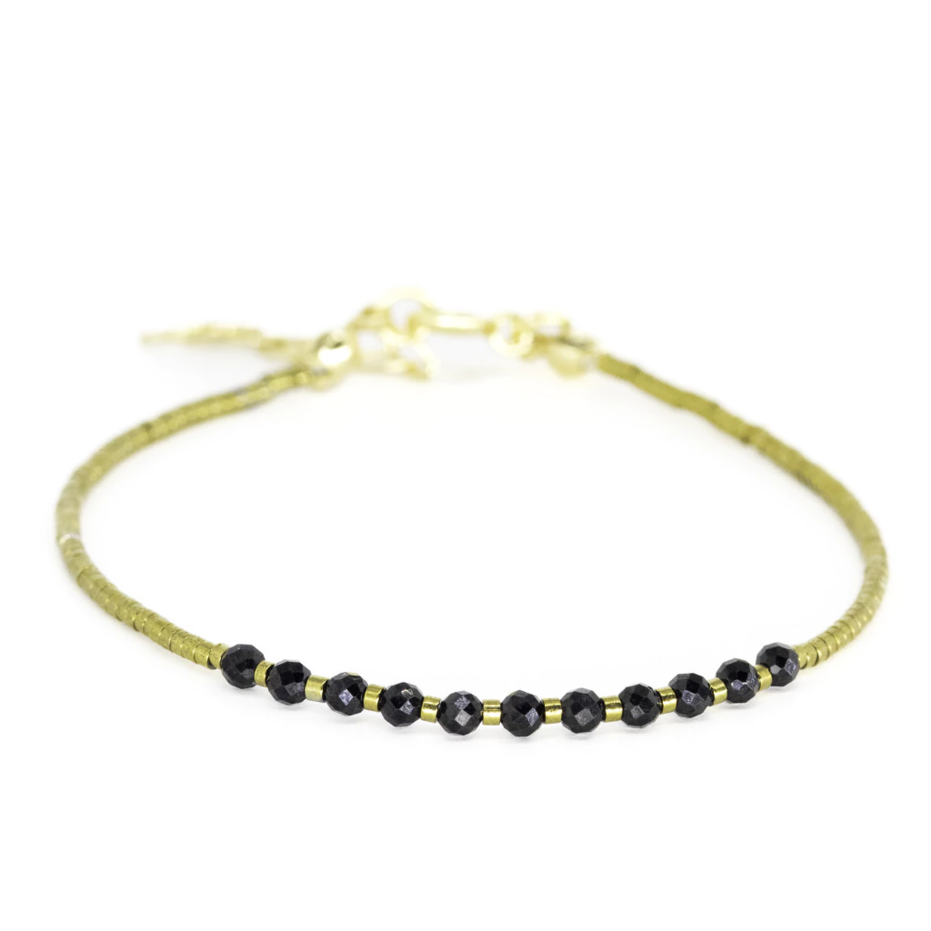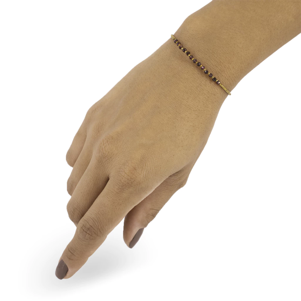 O destaque fica por conta do banho de ouro sobre a hematita, que confere um brilho especial e um toque de luxo sutil, elevando o visual a outro patamar. Cada pedra natural é única, trazendo consigo nuances e texturas que fazem de cada pulseira uma joia exclusiva, capaz de transformar qualquer look.